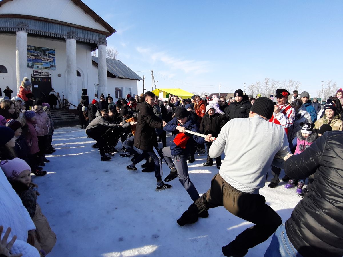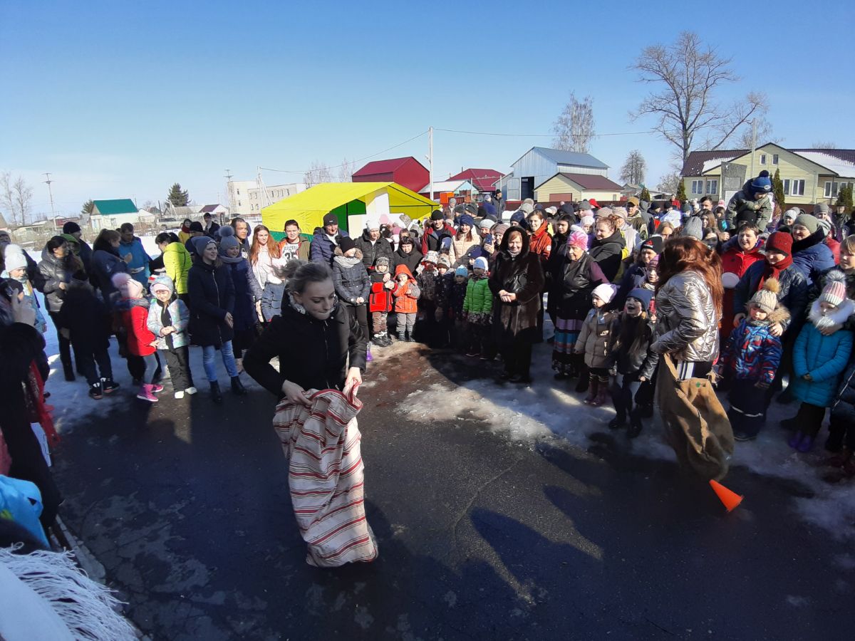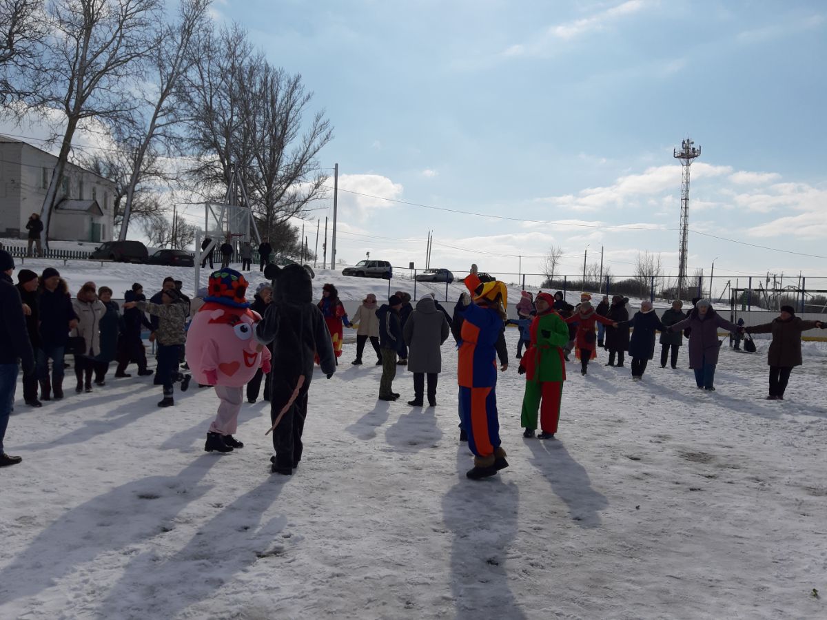 Народное гулянье проводилось по старинному русскому обычаю. Для жителей и гостей поселка была подготовлена праздничная программа с конкурсами и различными забавами. Это конкурсы "Бег в мешках", "Ходули", "Силачи", "Перетягивание каната", а также конкурс "Столб", в котором главным призом был живом петух. Победителям вручались призы и сладкие подарки. Звучали веселые песни в исполнении вокального ансамбля "Калина Красная" и солистов художественной самодеятельности. Все танцевали и веселились, водили хороводы, принимали активное участие в конкурсах. Ребятишки играли в снежки, лепили снеговиков и катались с горки. Всех участников и гостей праздника угощали горячим чаем и, конечно же, блинами - символом праздника. По традиции проводы русской зимы завершились сжиганием чучула "Масленица".