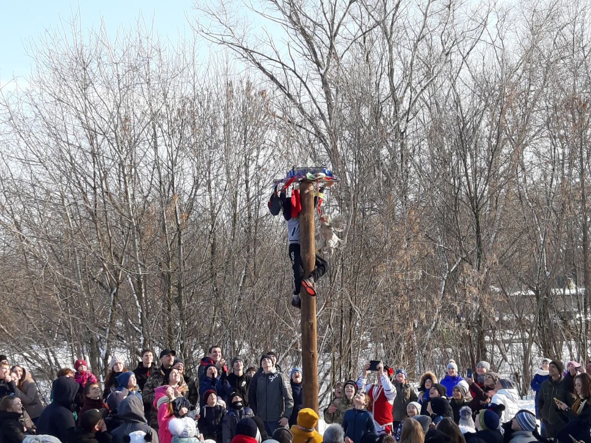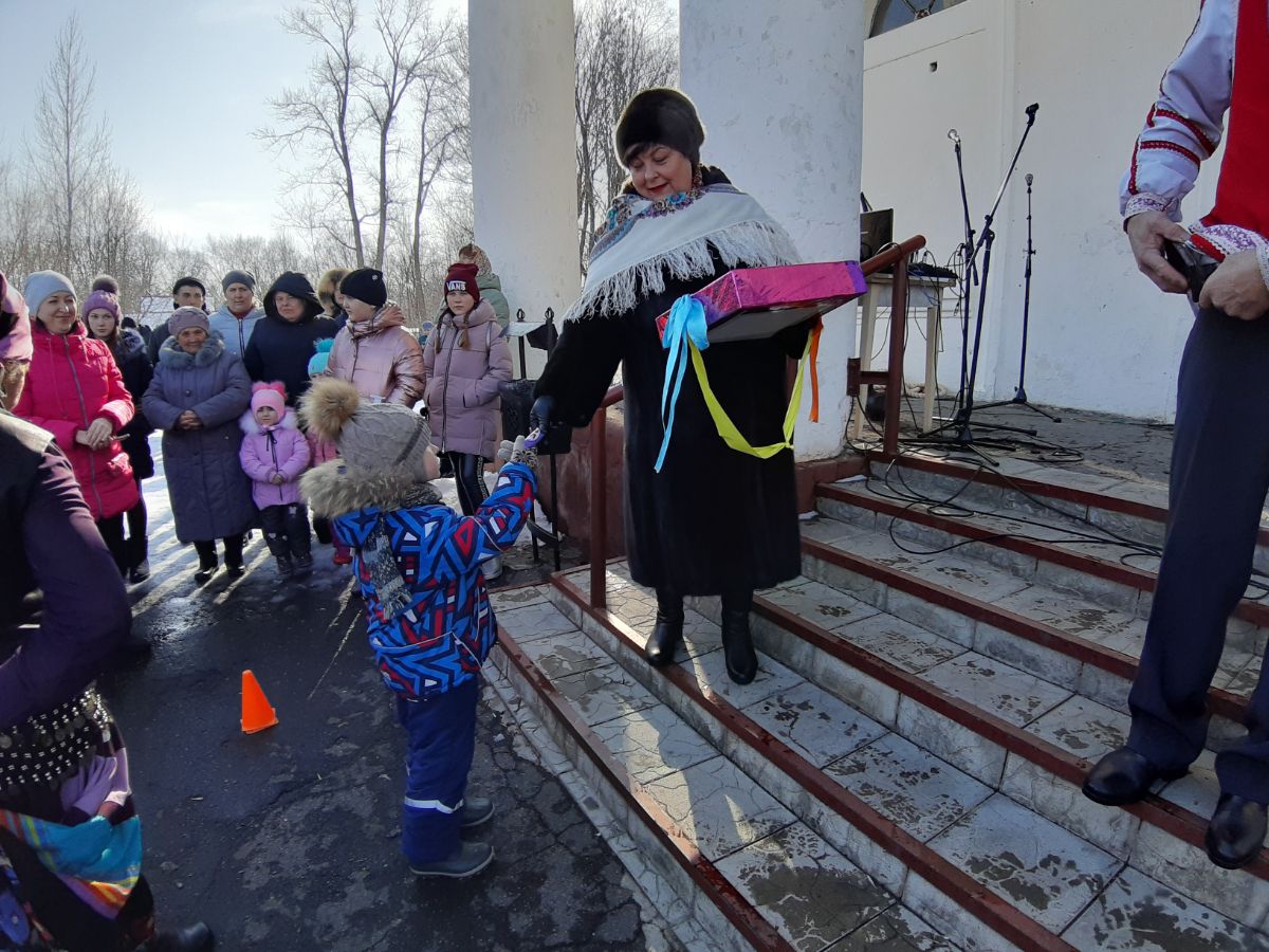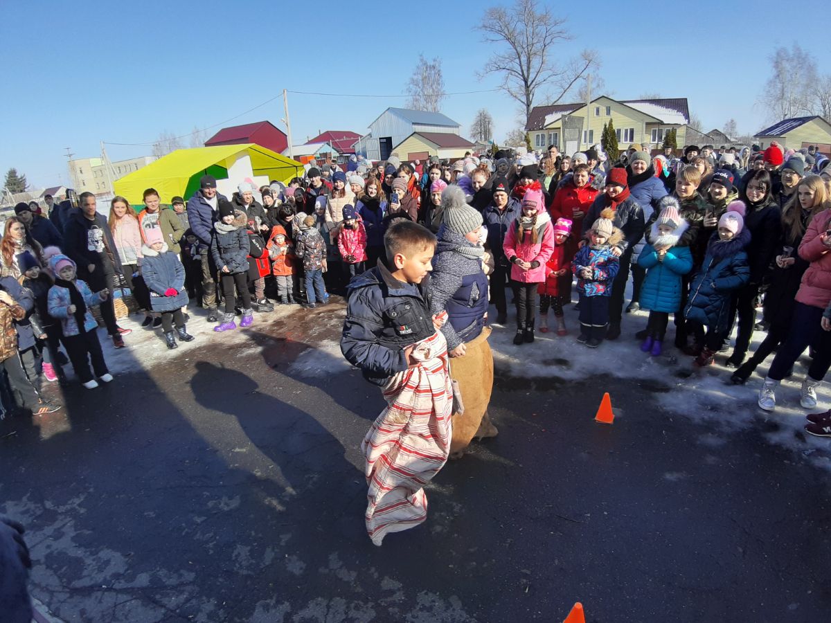 Народное гулянье проводилось по старинному русскому обычаю. Для жителей и гостей поселка была подготовлена праздничная программа с конкурсами и различными забавами. Это конкурсы "Бег в мешках", "Ходули", "Силачи", "Перетягивание каната", а также конкурс "Столб", в котором главным призом был живом петух. Победителям вручались призы и сладкие подарки. Звучали веселые песни в исполнении вокального ансамбля "Калина Красная" и солистов художественной самодеятельности. Все танцевали и веселились, водили хороводы, принимали активное участие в конкурсах. Ребятишки играли в снежки, лепили снеговиков и катались с горки. Всех участников и гостей праздника угощали горячим чаем и, конечно же, блинами - символом праздника. По традиции проводы русской зимы завершились сжиганием чучула "Масленица".